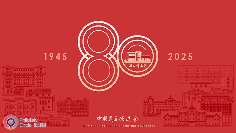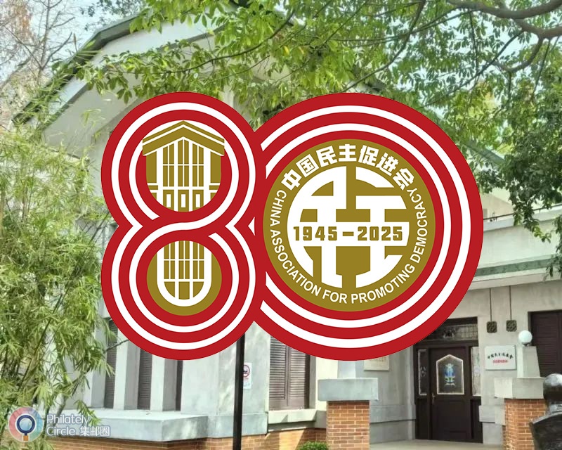 2025年,民进迎来成立80周年。为此发布的纪念标识,以数字“80”为核心设计,按照惯例邮资图使用80周年标识,标识主视觉表现了数字80和上海明复图书馆会心楼的建筑立面,所以此封主题和主图原地皆在上海,图标巧妙融合多重象征意义:三层交织的同心圆,既寓意民进践行“做中国共产党的好参谋、好帮手、好同事”的政治责任,也象征其“坚持接受中国共产党的领导,坚持爱国、民主、团结、求实,坚持立会为公”的优良传统;圆心突出“民主”二字,呼应创立初心;数字“8”的造型融入民进成立旧址的建筑元素,形似向上箭头,代表创始人马叙伦“在正道上行”的政治嘱托,寄托了对民进事业发展的美好祝愿。