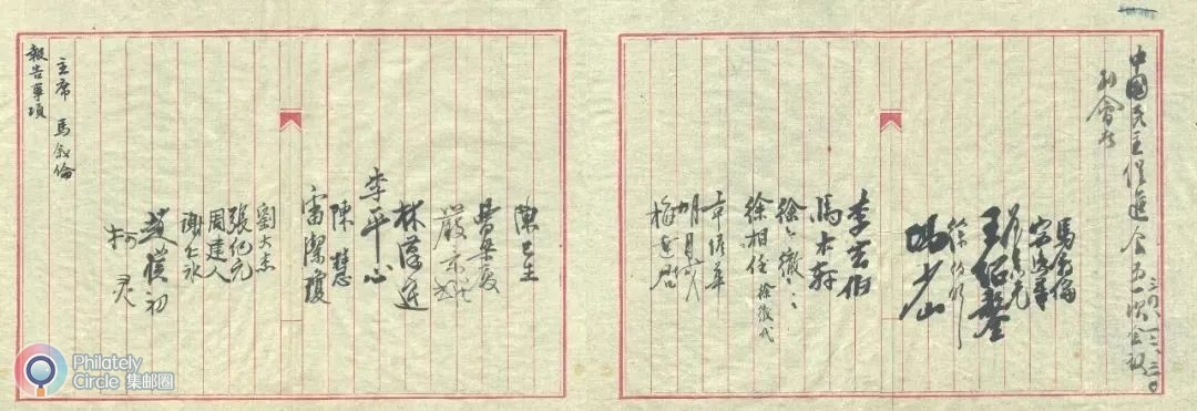 上图为中国民主促进会成立地上海市黄浦区陕西南路235号黄浦区明复图书馆会心楼,下图为中国民主促进会成立大会在上海召开当天26人的签到名单。