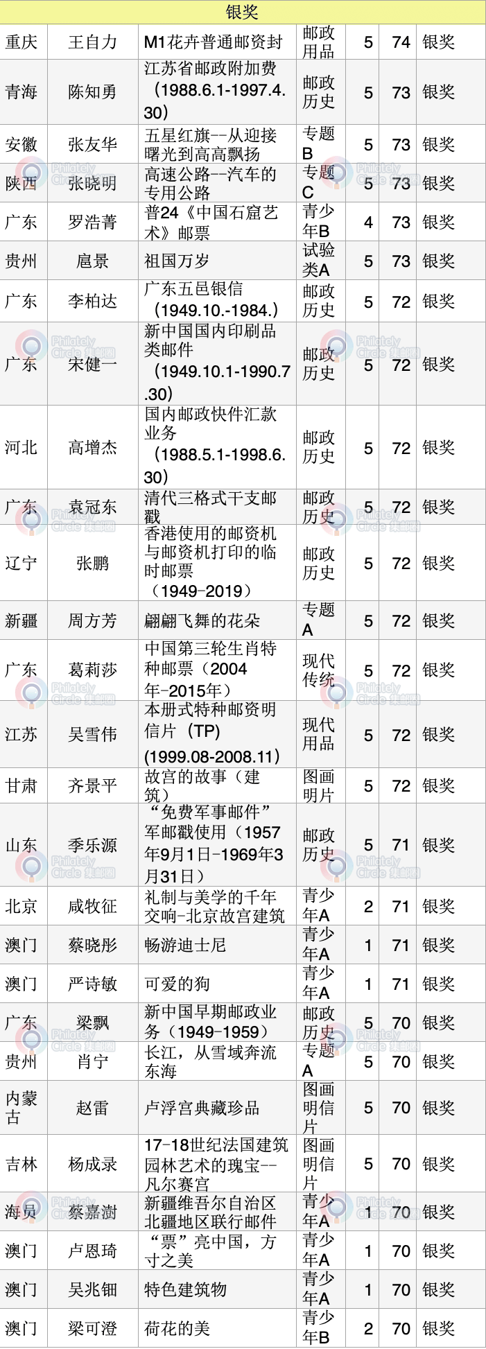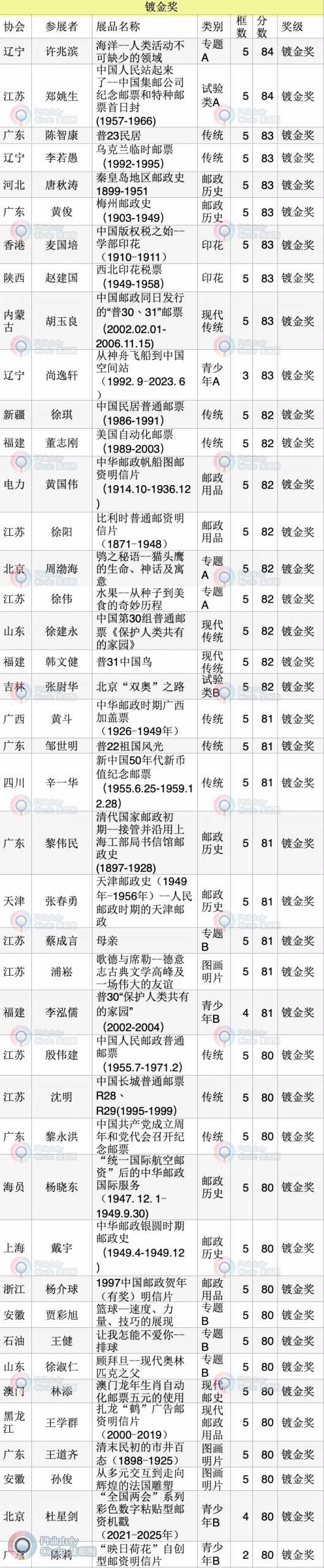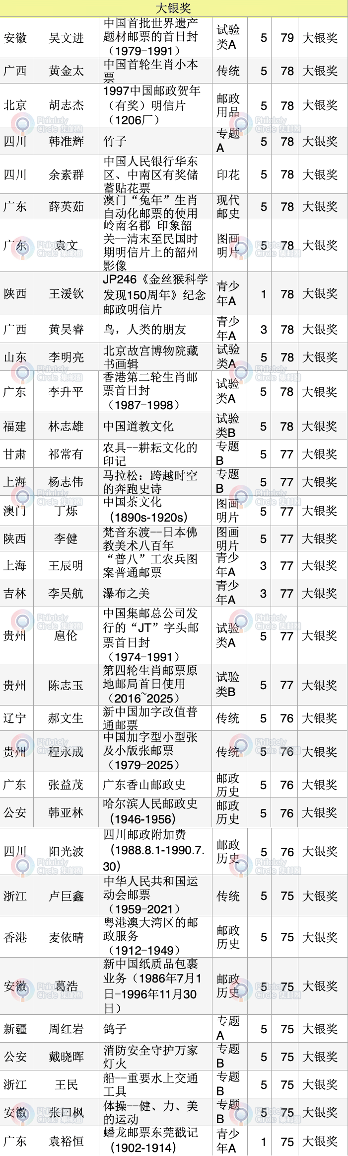 经过各位评审员的严格评审,本届邮展评审委员会按照中华全国集邮联合会集邮展览评审规则,参照国际集邮联合会(FIP)集邮展览评审总规则及各类别评审专用规则和指导要点的评分标准,根据本次邮展评审的特别规则,经过多轮评审,最终确定获奖名单。本届邮展共评出大金奖1部、金奖11部、大镀金奖31部、镀金奖42部、大银奖33部、银奖27部、镀银奖19部、铜奖8部;评出一框金奖3部、一框镀金奖30部、一框银奖25部、一框铜奖4部。郑炜《中国第一轮生肖邮票版式研究》获得唯一大金奖加特别奖加评委会祝贺💐💐💐,金奖邮集中邮政历史拿下4部,传统拿下1部,专题拿下2部,图画明信片拿下1部,印花拿下1部,祝贺各位获奖者,目录已完整上传。